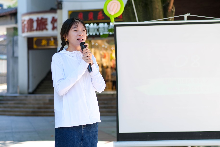 节目表演环节结束,观众们纷纷鼓掌叫好。“超广角”团队的成员们通过图片和视频的方式展示和分享了五天来的收获与故事。最后,带队老师李畅进行了汇演总结,她代表团队全体成员对石壕镇政府领导、社区工作人员和居民的热情支持表示感谢。