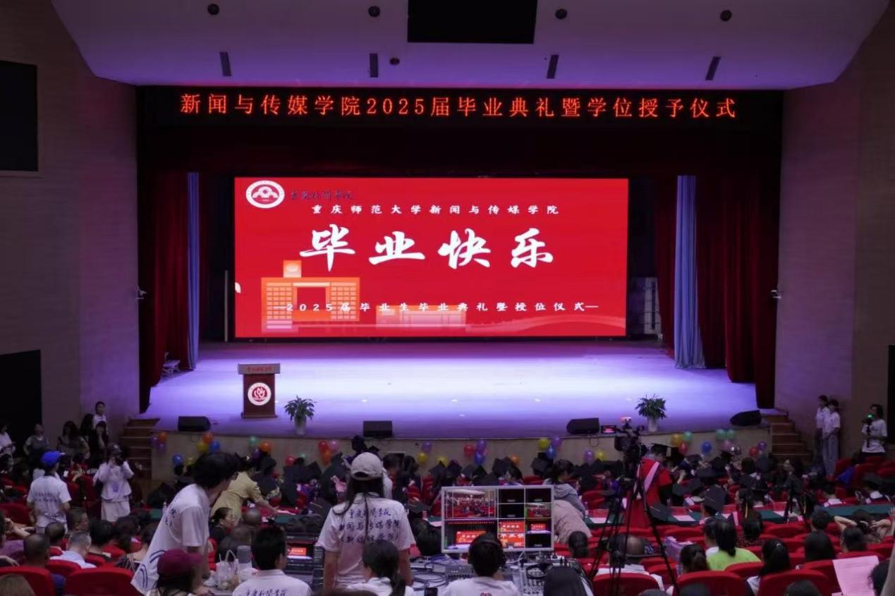 典礼现场,我院党委书记陈谦发表致辞。他以2025届毕业生们在校四年(三年)来的成长轨迹为轴,回顾其蜕变与成长。他指出在当前“百年未有之大变局”下,互联网的迅猛发展使信息传播的格局发生了深刻改变,在场的同学们作为新时代传媒人,生逢盛代、肩负重任。临别之际,他寄语同学们要有拥抱向上向善的初心、坚持学无止境的恒心、常怀感恩包容的真心。最后,陈谦书记祝愿全体毕业生前程似锦,归来仍是少年。