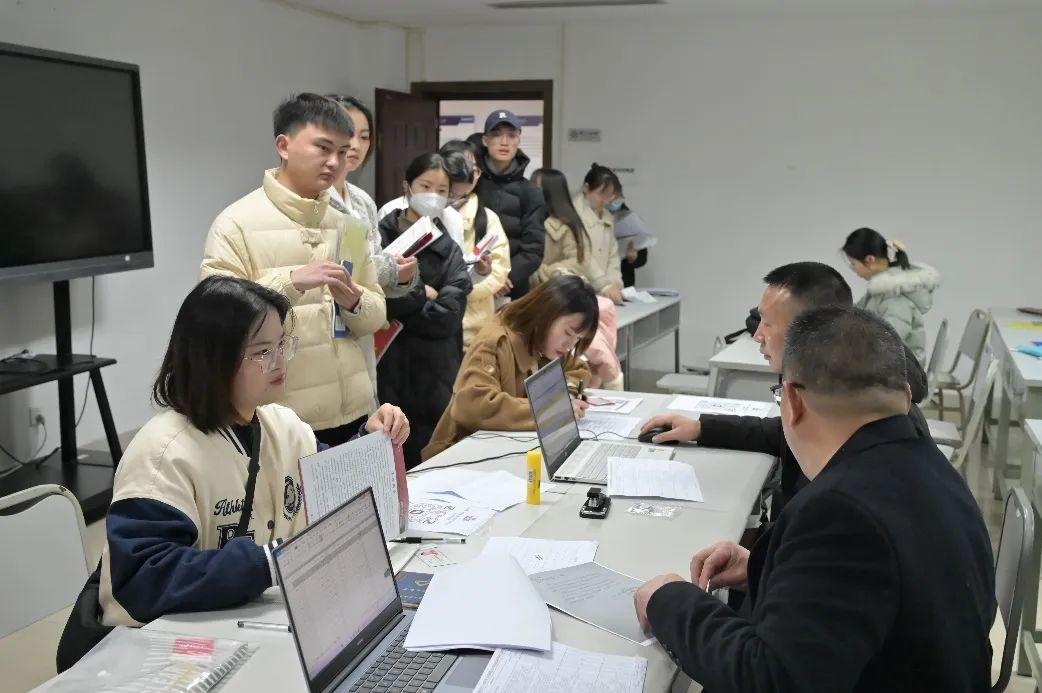 2月25日,各单位于招就处设立资格审查点,进行第一轮资格审查,同学们则根据自己的求职意向,准备所需材料,有序报名。