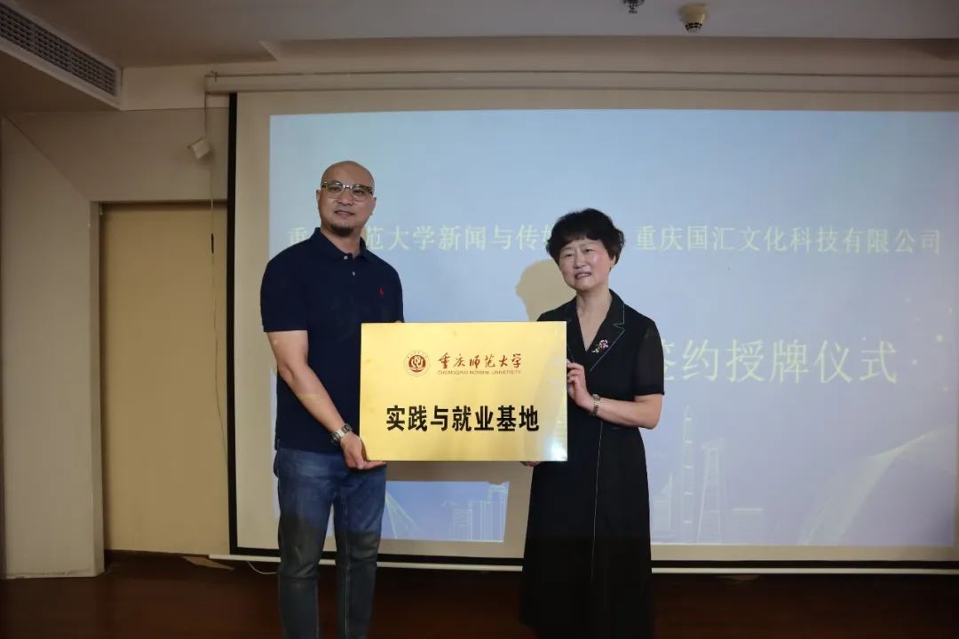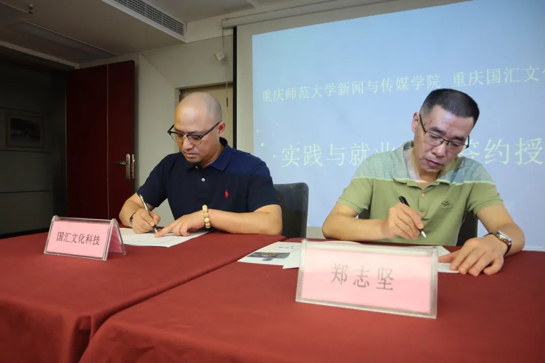 会上,党委书记郑志坚代表学院与国汇文化科技签署了“实践与就业基地”协议,由党委副书记赵艳君授牌。
