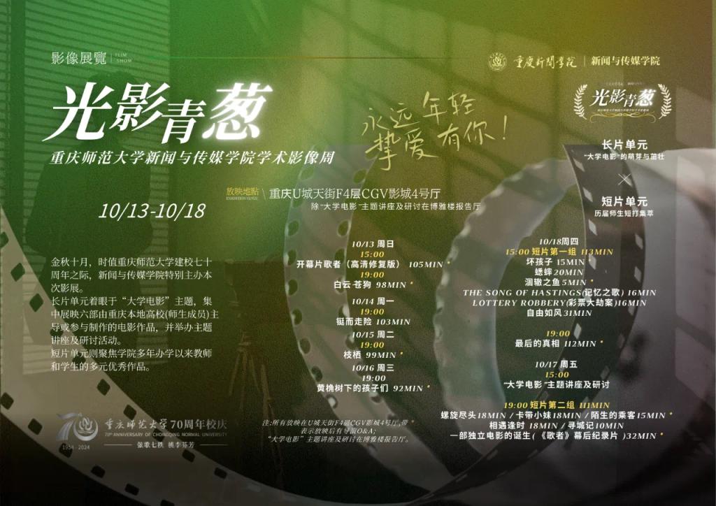 10月13日下午,m88,m88.com,明升体育88迎来了学术影像周盛大开幕。开幕式重头戏是在重庆龙湖U城天街CGV影城先后展映的两部电影——《歌者》和《白云·苍狗》。开幕仪式由学院影视学部主任张楚老师主持,吸引了众多影视界学者、专家及学生前来参加。
