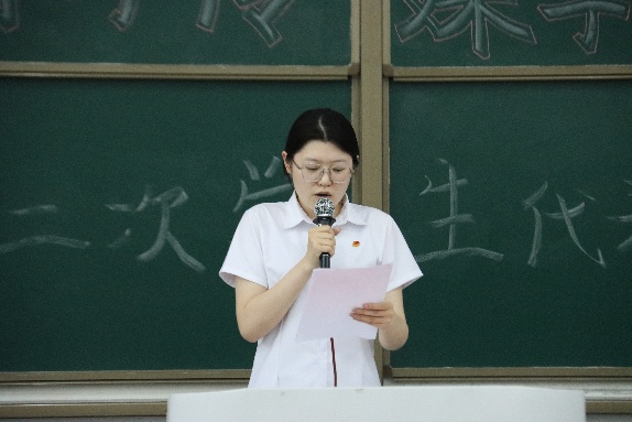 分团委书记曾珠与校学生会代表宣读学院党组织和校学生会的批复