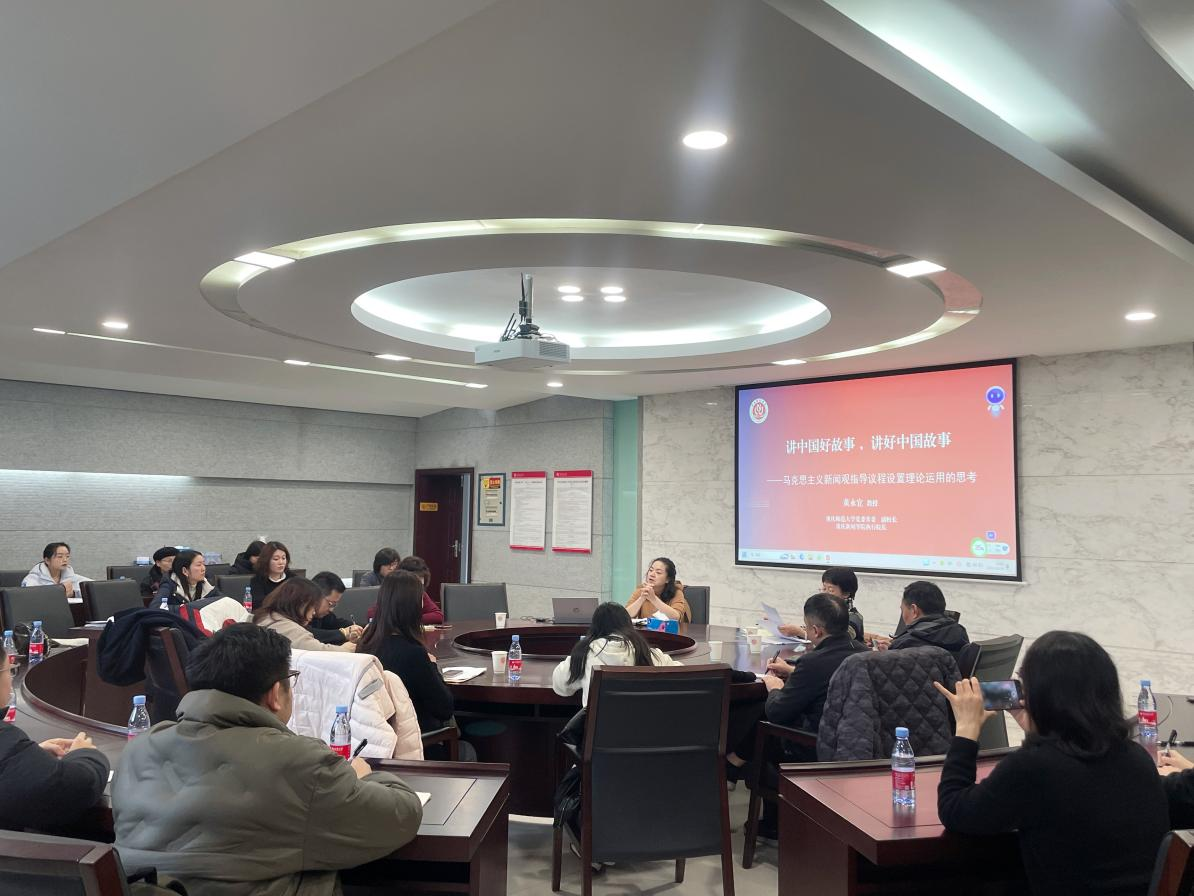 会上,黄永宜首先对12月21日的马克思主义新闻观与新闻传播学研究系列讲座进行了总结和回顾。随后,黄永宜作题为《讲中国好故事讲好中国故事——马克思主义新闻观指导议程设置理论运用的思考》的专题讲座,深入浅出地阐述了马克思主义新闻观的基本原理和核心观点,并结合当前新闻传播的实际案例,详细分析了议程设置理论在马克思主义新闻观指导下的具体运用。她强调,讲好中国故事,不仅是对外传播中国声音、展现中国形象的重要途径,是对内凝聚共识、增强民族自信心和自豪感的重要手段,更是重庆新闻学院未来发展的重要基石与方向。我们必须坚持马克思主义新闻观的指导地位,不断创新其研究和实践应用的方法和手段,扎实推进部校共建重庆新闻学院的建设。
